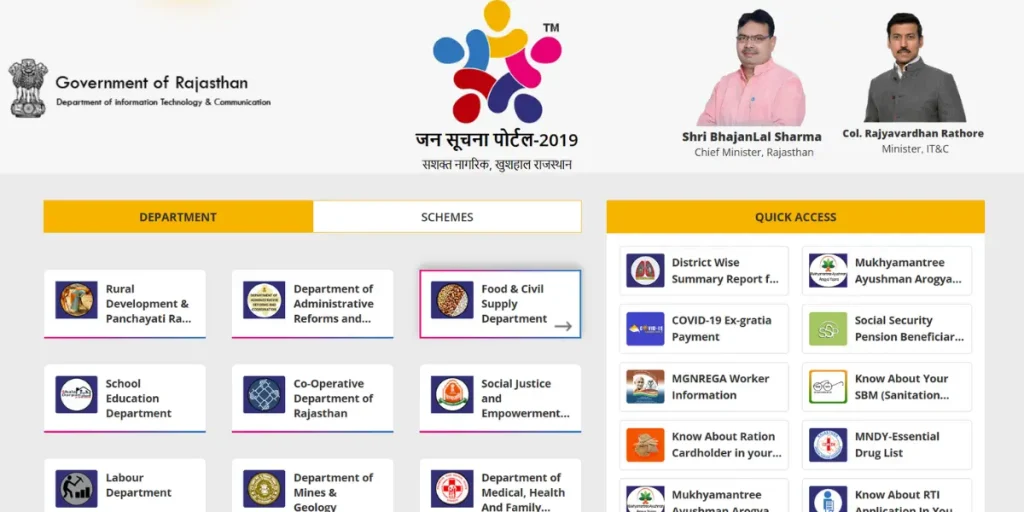 जन Jan Soochna Portal Rajasthan सरकार द्वारा शुरू की गई एक वेबसाइट है, जो सरकारी योजनाओं और सेवाओं की जानकारी एक ही स्थान पर प्रदान करती है।